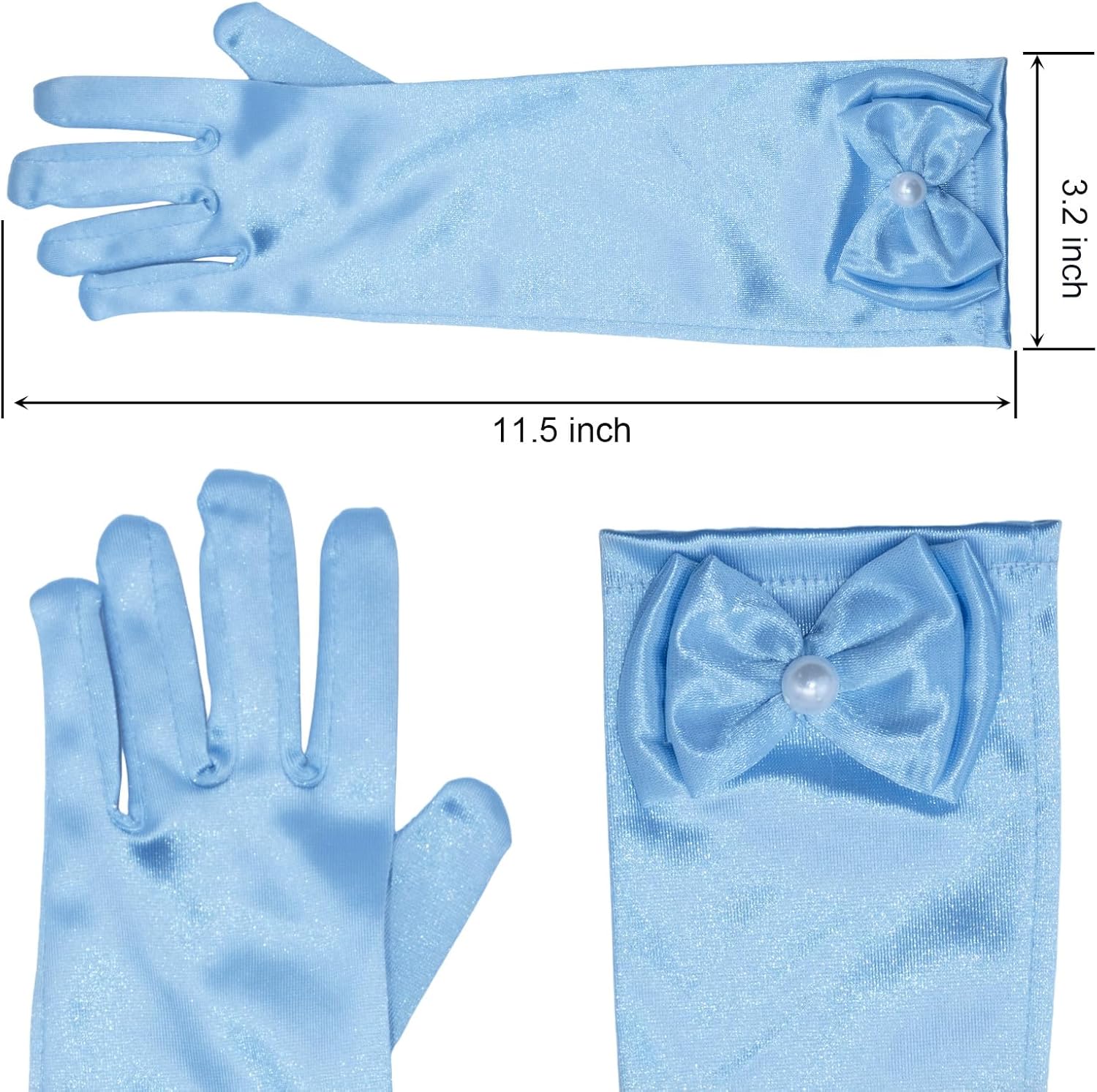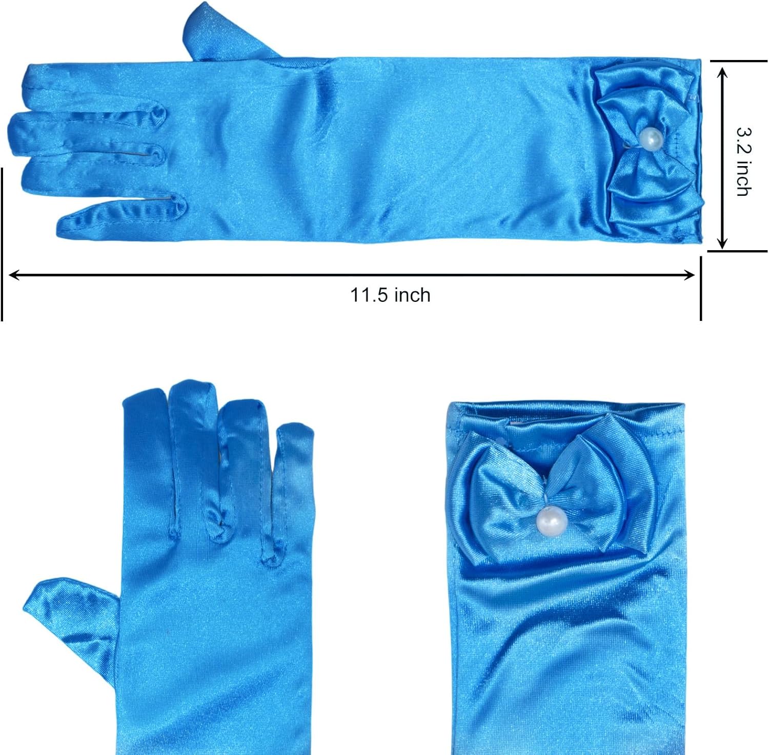 • Material : Our girls dress up gloves with slightly stretchy satin fabric,soft to touch,comfortable to wear.